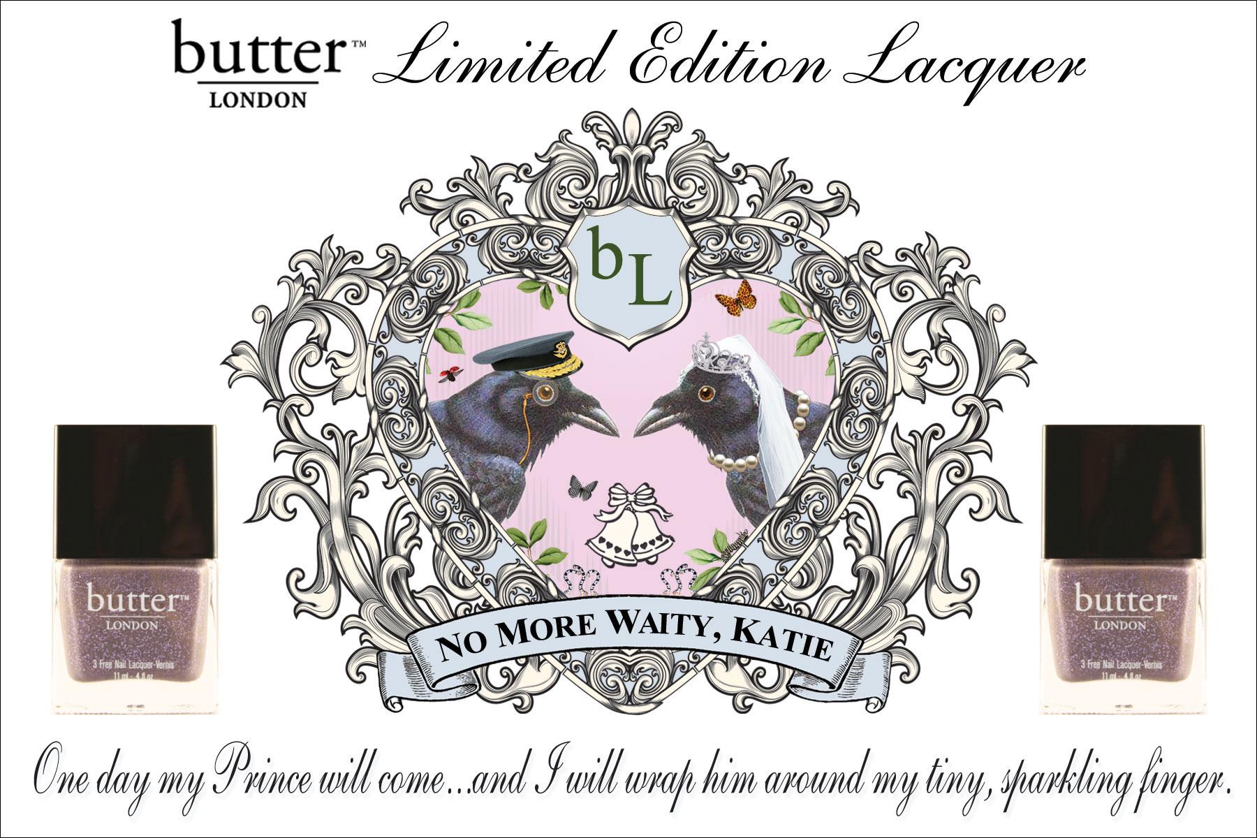 A few hours before the royal wedding, Butter London provides you with what you need to charm your own Prince. The limited edition “No more waity, Katie!” nail-polish has been selling like mad since the 1st March. Due to the great demand, the company completed the series with a lip gloss a few weeks ago.
