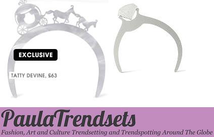 Visit Selfridges to choose from the exclusive Tatty Devine Jubilee tiaras (above), like the horse and carriage tiara at 63 pounds, which is my favourite – reminds me of Frank Sinatra obviously. Finished in pearlescent acrylic, this cute tiara available from Selfridges reminds us of Cinderella as she heads off to the ball. Now all that’s left is to find Prince Charming! How about you finding yours?